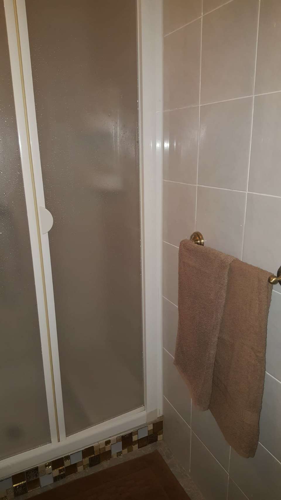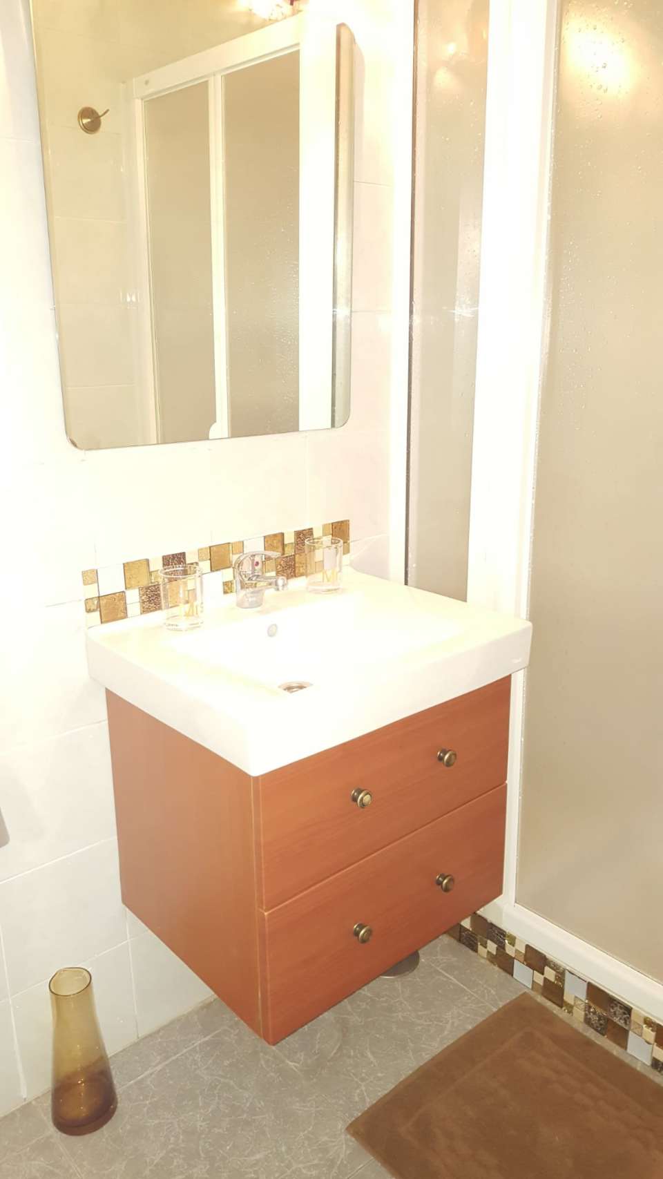Un baño completo, y además un patio interior con lavadora, tendedero y plancha.