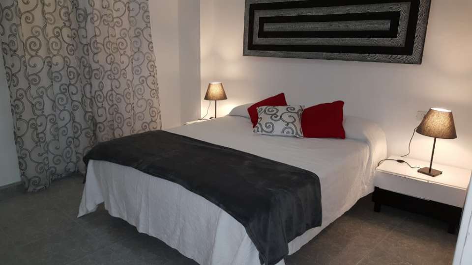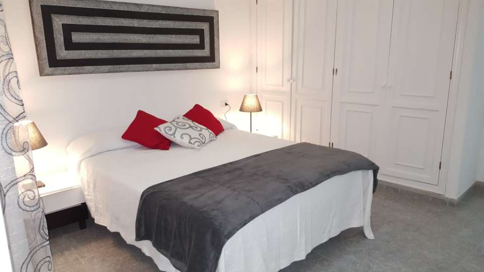 Dispone de un amplio hall, y la habitación principal está equipada con cama de matrimonio grande, un armario empotrado, mesas de noche y ventilador, así como un escritorio.